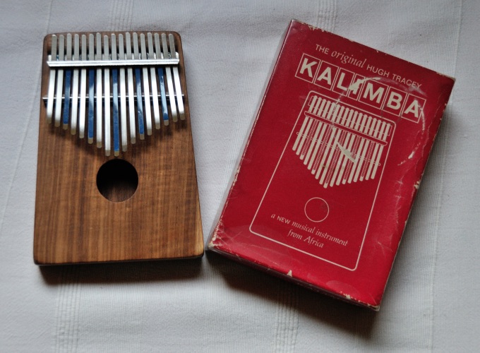 Kalimba (Lamellophon)Lamellophone sind in Afrika verbreitete Musikinstrumenten, bei denen mehrere Lamellen sind auf einem Brett oder Resonanzkasten befestigt sind. Sie werden mit den Daumen angezupft. Zu den Lamellophonen zählen Kalimba, Mbira, Nsansi und Kadongo. Veraltete Bezeichnungen sind Zupfzungenspiel oder Daumenklavier. Die Hugh Tracey Kalimba mit 17 Zungen auf einer Resonanzbox wurde von dem Musikethnologen Hugh Tracey in den 1950ern entwickelt und in Serie gebaut. Sie hat ein Schallloch auf der Vorderseite und zwei kleine Modulationslöcher auf der Rückseite, die man mit den Fingen verschliessen werden kann, um Modulationseffekte zu erzielen. |