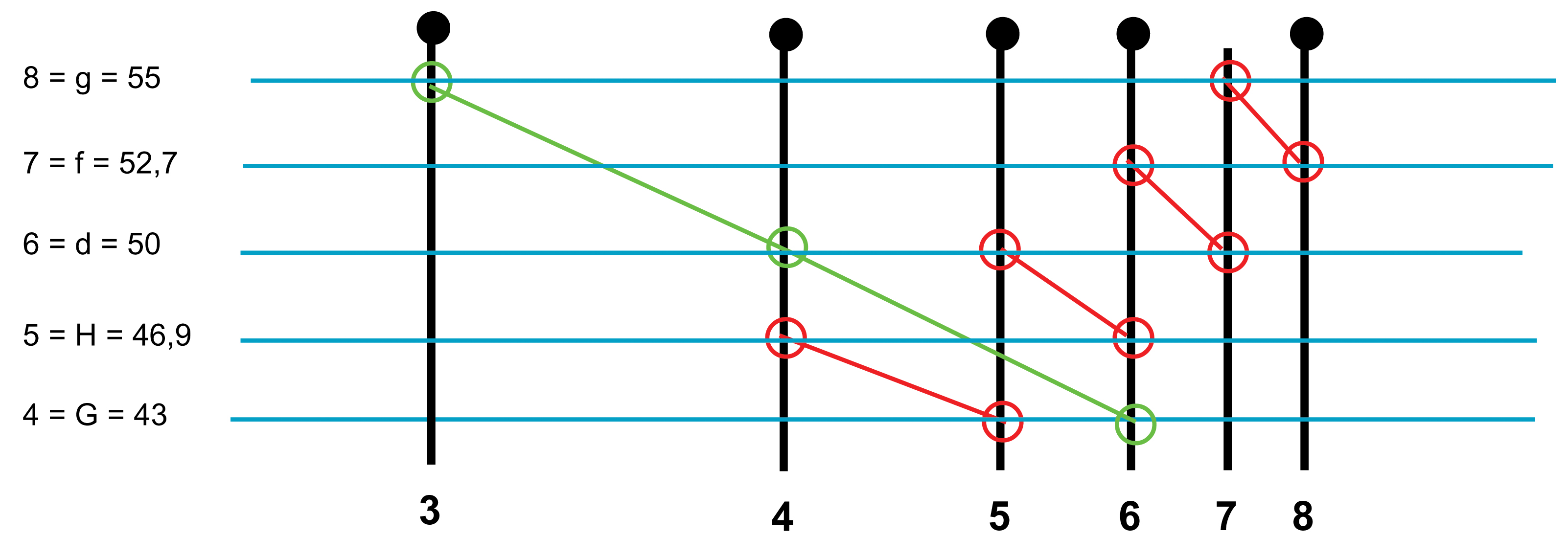 Stimmvorgang für das Chin-Instrument. Stimmung nach den Partialtönen (Obertönen) 4, 5, 6, 7, 8. Farbig markiert sind die - beim Flageolett-Tönen - gleichen Töne. über die Absichtslosigkeit des Windes Die Natur ist dem Menschen gegenüber vollkommen gleichgültig. http://www.luise37.de/2009/absichtslosigkeit/absichtslosigkeit.htm |